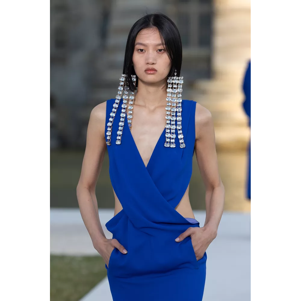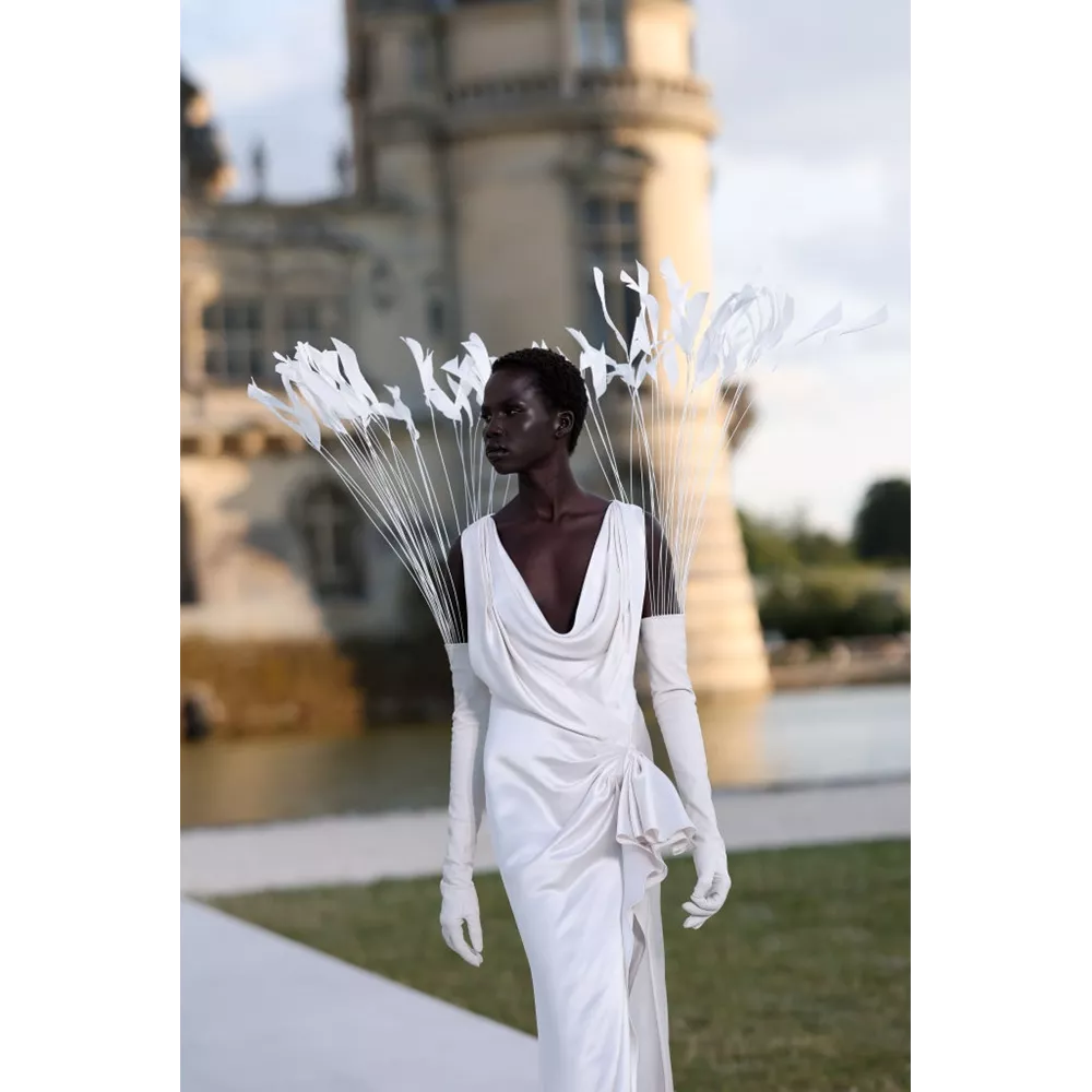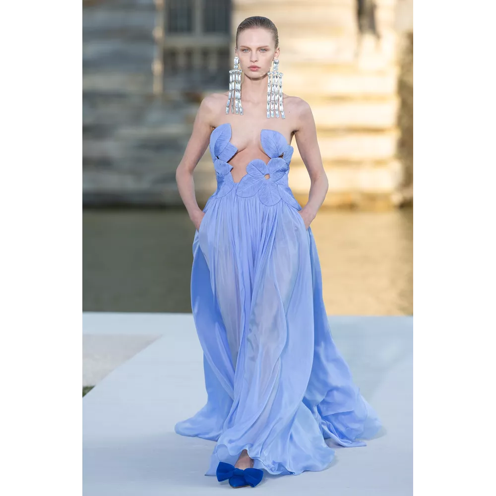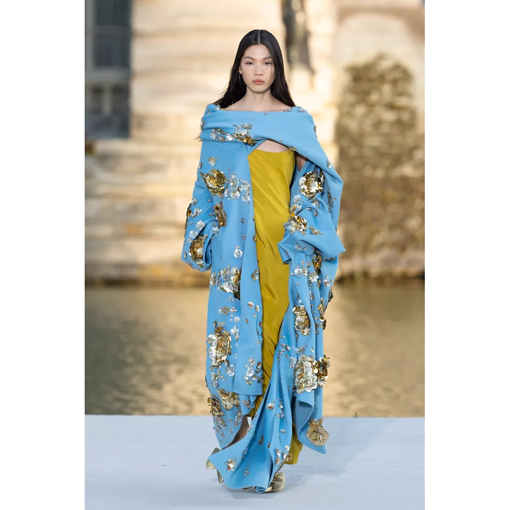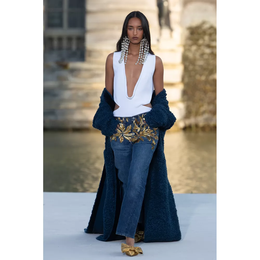 Αν κάτι σας θυμίζει αυτό, δεν κάνετε λάθος: ο Matthieu Blazy δημιούργησε τζιν και tank top από δέρμα για την Bottega Veneta στην πρώτη του συλλογή για το brand, και ναι, δεν θα ήταν υπερβολή να πούμε ότι έβαλε ένα σημαντικό λιθαράκι (τότε, τον Φεβρουάριο του 2022 με τη συλλογή Fall -Winter 2022- 2023) σ' αυτό που έχει καθιερωθεί στη μόδα του 2023 ως "ήσυχη πολυτέλεια". Ο Piccioli, λοιπόν, φαίνεται να δανείζεται εκείνη την πρώιμη ιδέα και να τη μεταφέρει ένα επίπεδο παραπάνω, στην haute couture.
