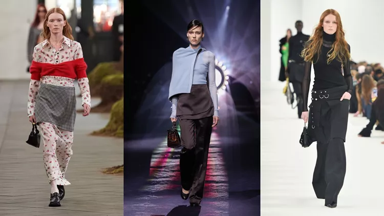 Στην πρώτη συλλογή, μία sequin φούστα φοριέται πάνω από τζιν παντελόνι συνδυάζεται με leather jacket και flip flops και εγκαινιάζει μια σειρά από ανάλογα στιλ, ενώ στη δεύτερη μία μίνι καρό φούστα έχει φορεθεί πάνω από μια άλλη μάξι φλοράλ (ΟΚ, δεν είναι παντελόνι αλλά συνεισφέρει στη γενικότερη ιδέα). Από την άλλη, η σχεδιάστρια Paolina Russo δημιουργεί την denim - on -denim εκδοχή του trend, ενώ brands όπως τα Remain, Gestuz και Mark Kenly Domino Tan κατεβαίνουν για τη μεθεπόμενη σεζόν με την πρόταση "φόρεμα πάνω από παντελόνι". Τέλος, τα Lovechild 1979 και Stine Goya παρουσιάζουν εκείνες τις εκδοχές που κάνουν το trend ιδανικό για να φορεθεί στο γραφείο.