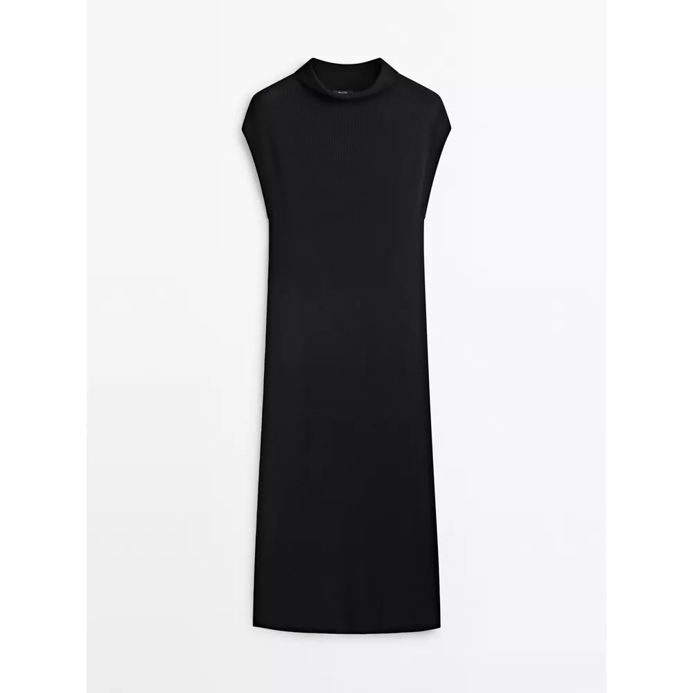 Μακρύ πλεκτό φόρεμα με ψηλό γιακά, Massimo Dutti.