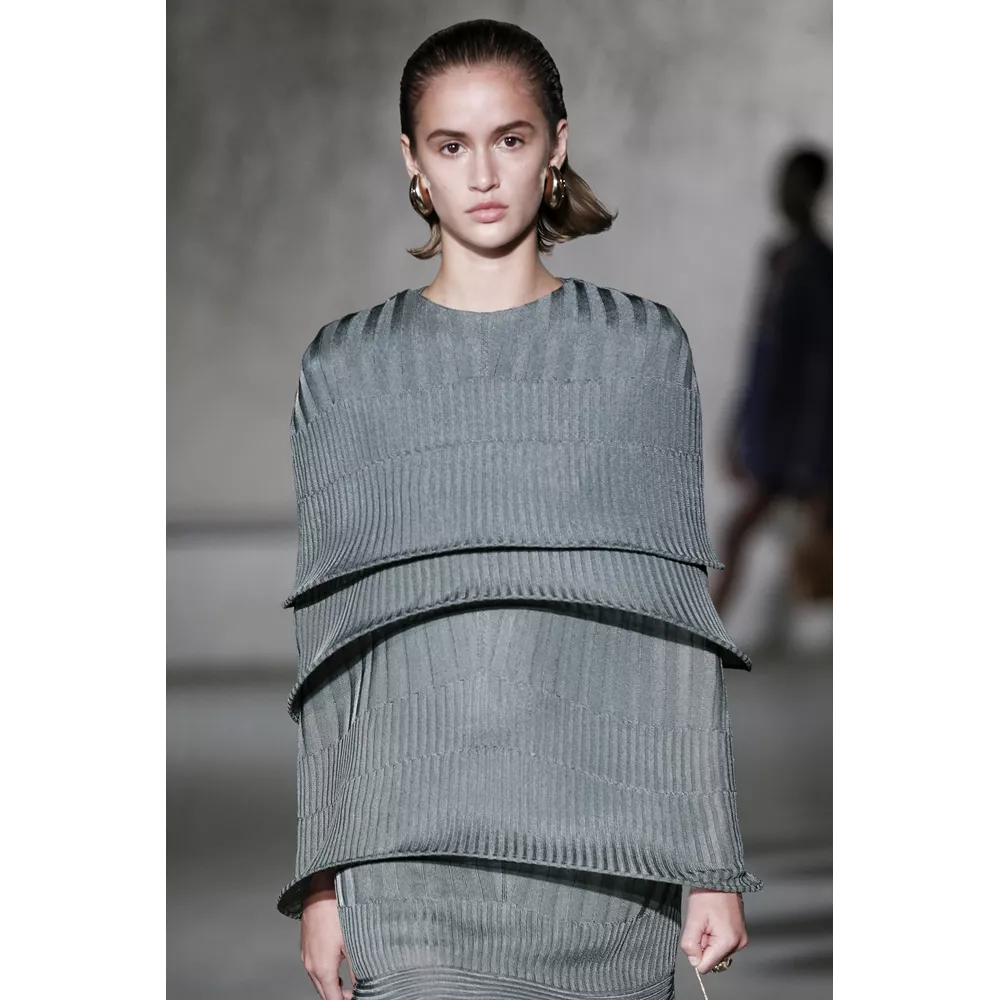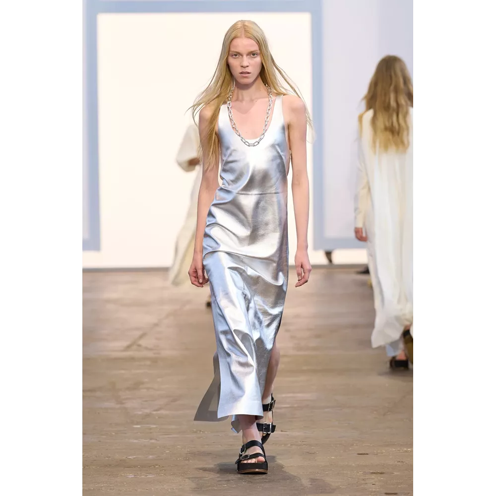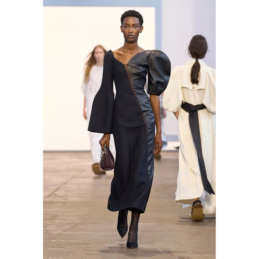 Στην SS'24 συλλογή της, που παρουσιάστηκε στο Park Avenue Armory στο Μανχάταν, ο αριστοτεχνικός μινιμαλισμός του Khaite εμφανίζει στοιχεία σουρεαλισμού (γιατί πώς αλλιώς μπορεί να χαρακτηρίσει κανείς τα bold και statement χάλκινα ενωμένα χέρια που παίρνουν τον ρόλο της αγκράφας σε looks που περιλαμβάνουν είτε flowy μάξι φορέματα είτε μικροσκοπικά σορτς;), αλλά και στοιχεία όπως όγκους στα μανίκια ή γραμμές στις σιλουέτες (όπως τα U-shaped στη λαιμόκοψη φορέματα με τους υπερτονισμένους γοφούς) που συναντάμε σε άλλα λιγότερο φιλικά προς τον μινιμαλισμό στιλ. Μόνο που η "ήρεμη", λεία και "καθαρή" προσέγγιση της Holstein είναι αυτή που κάνει ακόμα και την πιο "δραματική" λεπτομέρεια να μοιάζει ό,τι πιο cool μπορείτε να φορέσετε σήμερα.