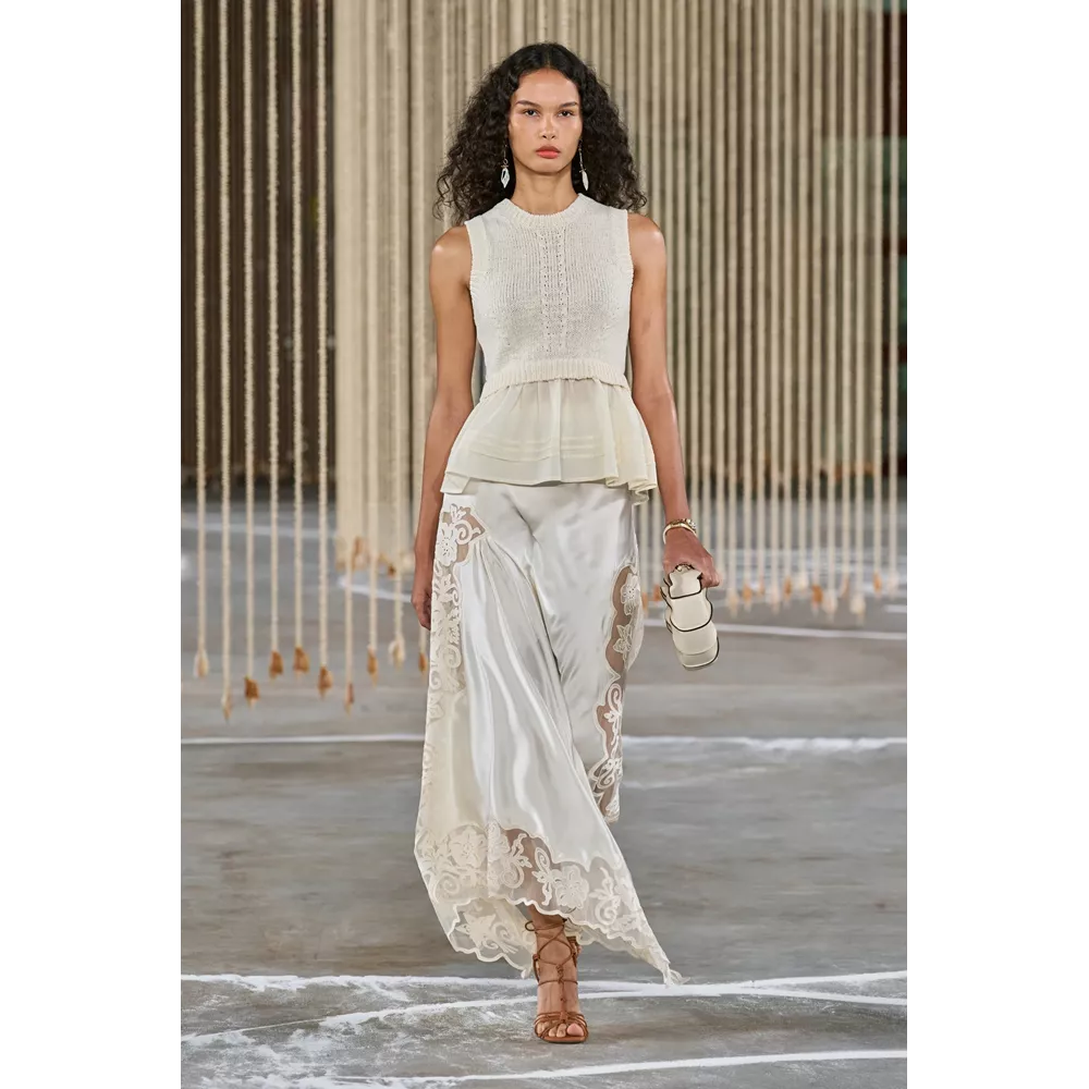 Από την άλλη, ο Stuart Vevers γιόρτασε δέκα χρόνια ως creative director του Coach και εστιάζει με την SS'24 συλλογή στο υλικό για το οποίο φημίζεται το brand, το δέρμα, προσφέροντας μοντέρνες και κομψές εναλλακτικές σε leather και suede παλτό και τζάκετ, η Tory Burch επιχειρεί να δώσει απάντηση στο τι σημαίνει "effortless" σήμερα μέσα από sculptural αρχιτεκτονικής σιλουέτες με τους δακτυλίους των κρινολίνων, ωστόσο, σε φορέματα και φούστες να θυμίζουν Space Age αισθητική, η coquette αισθητική της Sandy Liang δείχνει πιο ώριμη και προσφέρει επιλογές σε key-pieces που απέχουν - χωρίς να εγκαταλείπουν - τον "κοριτσίστικο" ρομαντισμό, η Gabriela Hearst συνεχίζει να κάνει καλά αυτό που γνωρίζει, ηθική μόδα και άρτια τεχνική, η Ulla Johnson δίνει ακόμα μεγαλύτερη ένταση στα μοτίβα και τα χρώματα τα οποία συνήθως ξεχωρίζουν στις συλλογές της, ενώ στον 3.1 Phillip Lim και την easy-going chic συλλογή του θα χρωστάμε την επιστροφή των capri pants στη μόδα της Άνοιξης 2024.