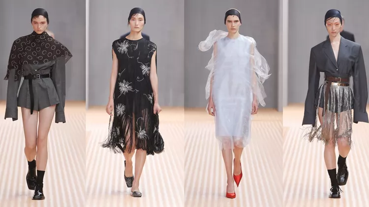 Το show πραγματοποιήθηκε τη δεύτερη μέρα της Εβδομάδα Μόδας του Μιλάνου στο Fondazione Prada και έγινε, όπως πάντα, ένα από αυτά που συγκέντρωσαν το μεγαλύτερο ενδιαφέρον. Και πολύ ενθουσιασμό. Ο πειραματισμός, που κάποιοι έσπευσαν να χαρακτηρίσουν έως και "weirdness", και οι νεωτερισμοί δεν έλειψαν από τη συλλογή SS'24, που έχει να προτείνει κάτι διαφορετικό, κάτι που θα δημιουργήσει νέες τάσεις, θα φορεθεί με διάθεση εξερεύνησης και θα αποτελέσει παρακαταθήκη της ιδιαίτερης, πρωτοπόρας αισθητικής που Miuccia Prada και Raf Simons έχουν καθιερώσει με τις συλλογές τους. Μία σεζόν, πίσω ας πούμε, ο οίκος έκανε τις νυφικές φούστες κομμάτι του καθημερινού στιλ, ενώ ακόμα πιο πίσω μίνι φούστες με ουρές, bomber με φτερά και polos με ανάγλυφο μπούστο έδιναν μία πρόγευση του που μπορεί να φτάσει το ακαταμάχητο δίδυμο της Prada.