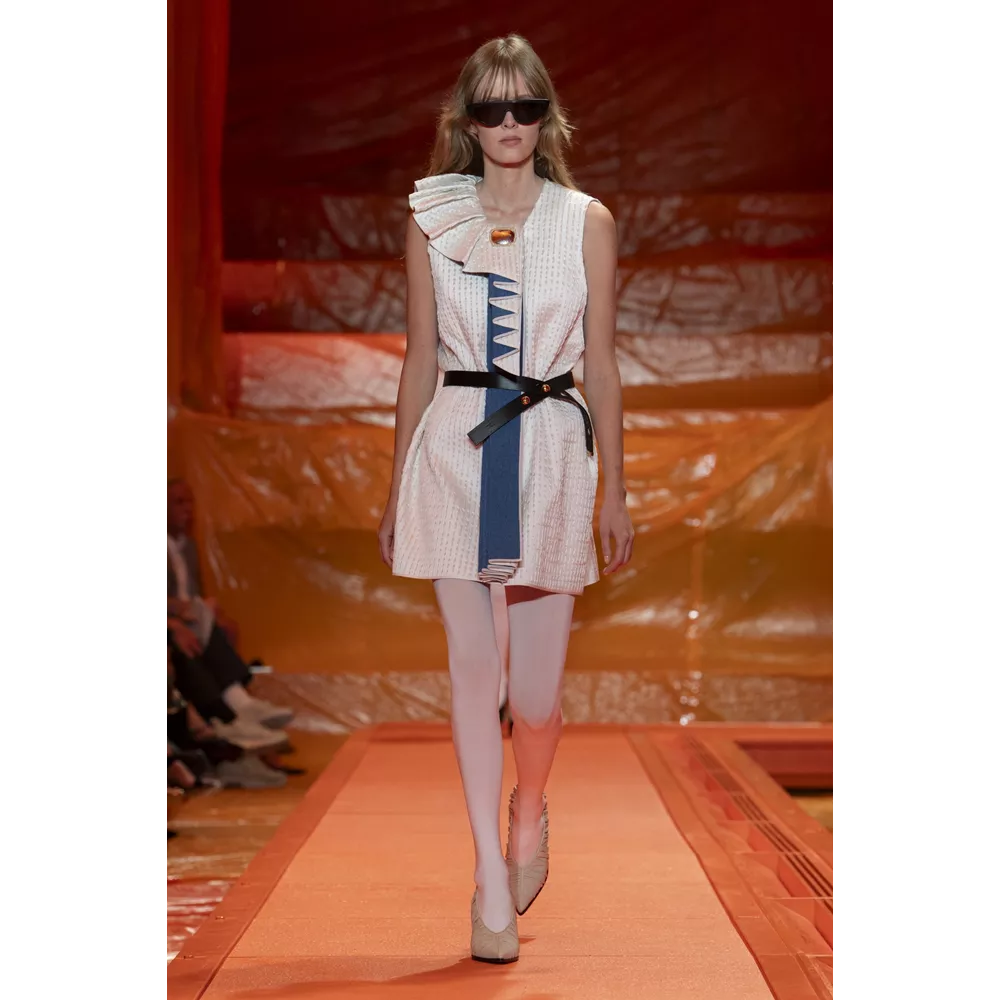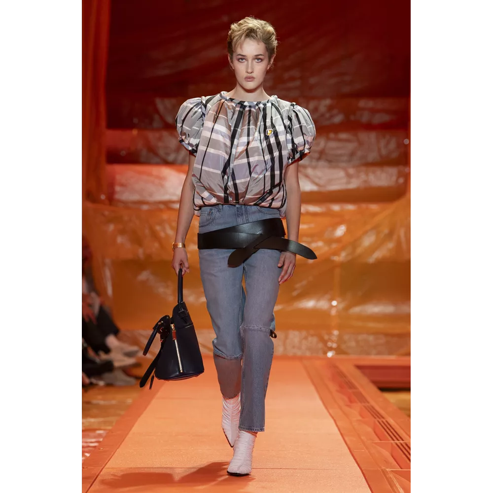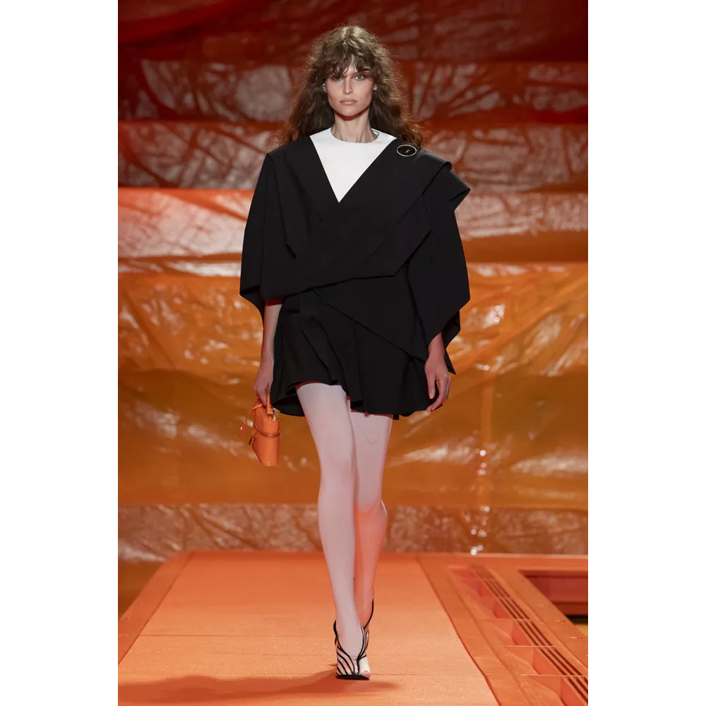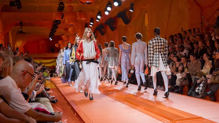 To show του οίκου Louis Vuitton πραγματοποιήθηκε στο Παρίσι, στον αριθμό 103 της λεωφόρου Champs-Élysées σ' ένα χώρο που ο σχεδιαστής παραγωγής James Chinlund μεταμόρφωσε σε κάτι που θύμιζε ...αερόστατο, για την ακρίβεια το εσωτερικό του, και που το φωτεινό πορτοκαλί χρώμα των πλαστικών με το οποίο είχε καλύψει τα πάντα, από τους τοίχους μέχρι τα καθίσματα, αντανακλούσε τις θερμές καλοκαιρινές μέρες στις οποίες απευθύνεται αυτή η συλλογή - όπως ασφαλώς αποτυπώνει και το ταξιδιάρικο πνεύμα Louis Vuitton. Από το front row δεν απουσίαζαν, βεβαίως, οι μούσες του οίκου όπως η Zendaya, η Ana de Armas, η Alicia Vikander, η Saoirse Ronan, η Jennifer Connelly κ.ά, φίλες του οίκου όπως η Cate Blanchett και η Cynthia Erivo, αλλά και ο καλλιτεχνικός διευθυντής των ανδρικών συλλογών της Louis Vuitton, Pharrell Williams.