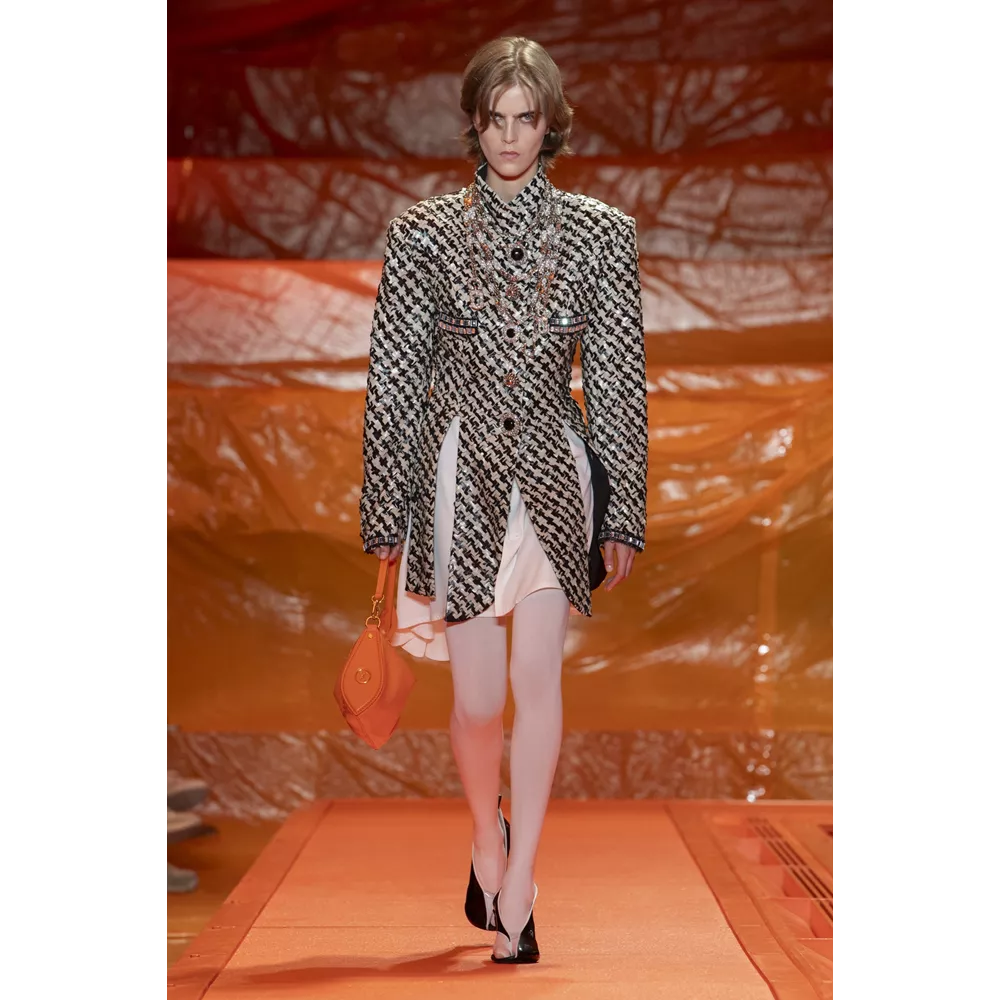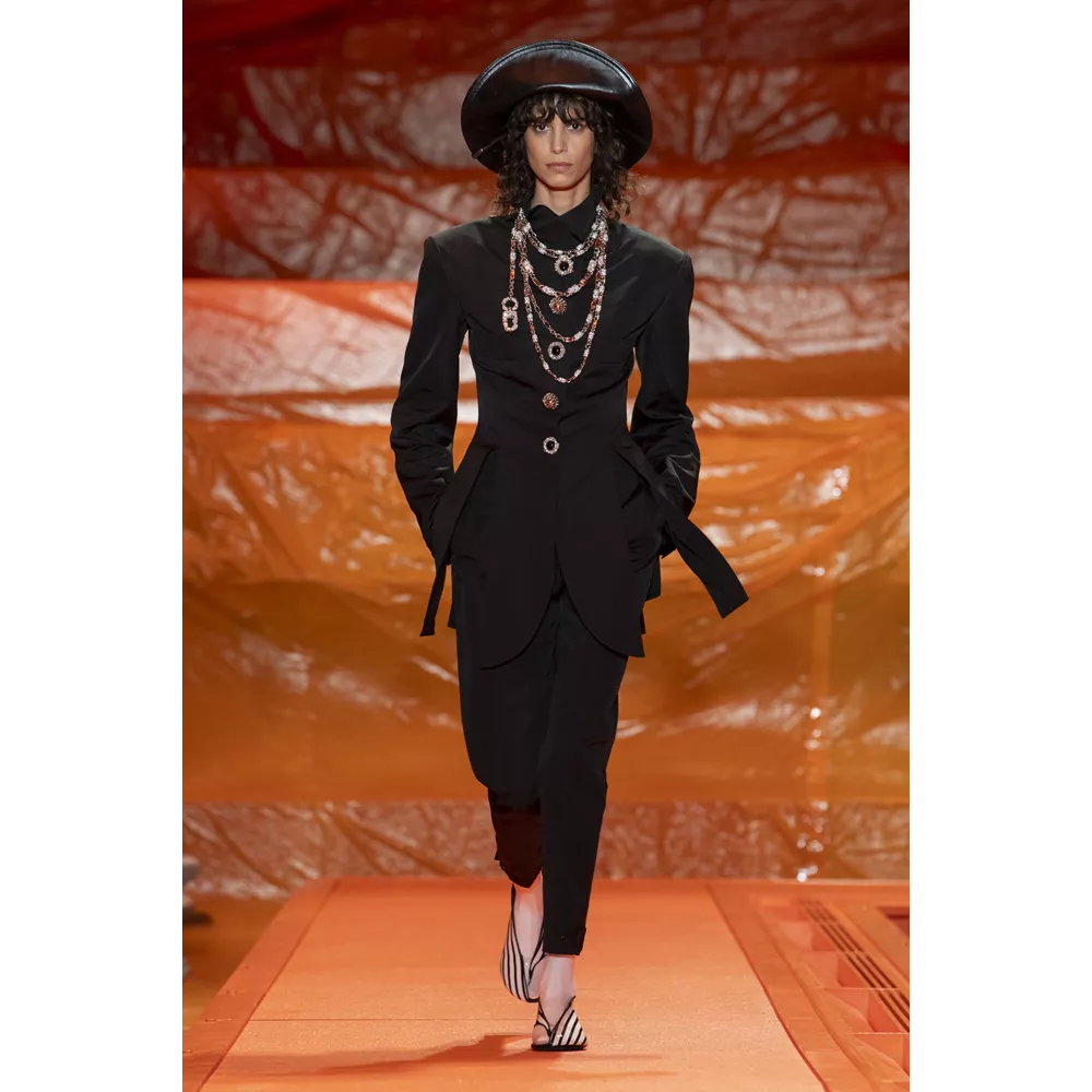 Η προσέγγιση του Ghesquière στο γαλλικό σικ είναι μια πραγματικά μοντέρνα, απελευθερωτική προσέγγιση. Δεν λείπει τίποτα από τα στοιχεία που διαχρονικά χαρακτηρίζουν το γαλλικό στιλ - τα tweed, τα ταγέρ, τα little black dresses, τα faux bijoux, τα καπέλα, οι αβίαστοι συνδυασμοί-, αλλά με μία παραμορφωτική, περισσότερο υπαινικτική και συμβολική, αλλά σίγουρα μοναδικά φρέσκια απόδοση.