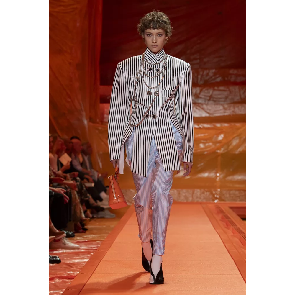 Αυτό που μπορεί κανείς να πει με βεβαιότητα για τις γυναικείες συλλογές του Nicolas Ghesquière για τον Louis Vuitton είναι ότι δεν φείδεται καθόλου σε δημιουργικότητα. Ό,τι παρουσιάζει ο επί μία δεκαετία καλλιτεχνικός διευθυντής του οίκου συνήθως δεν θυμίζει ούτε μοιάζει με άλλες συλλογές και δημιουργούς, δεν ακολουθεί κυρίαρχες τάσεις (βλέπε ας πούμε αυτήν της "ήσυχης πολυτέλειας" που συμπαρέσυρε πολλούς creatives στον ρυθμό της), δεν ακολουθεί γενικές επιταγές, εν ολίγοις, που διαμορφώνουν, έστω και υποσυνείδητα, το δημιουργικό πνεύμα και κατευθύνουν τη βιομηχανία της μόδας. Ο Nicolas Ghesquière είναι μία ταυτότητα μόνος του, κάνει αυτό που τον εμπνέει κάθε φορά και στη νέα SS'24 συλλογή Louis Vuitton συνεχίζει τη σπουδή του πάνω στο γαλλικό chic και αποτίνει φόρο τιμής στην ανεπιτήδευτη γαλλική κομψότητα με τη θαρραλέα τόλμη που πάντα τον χαρακτηρίζει.