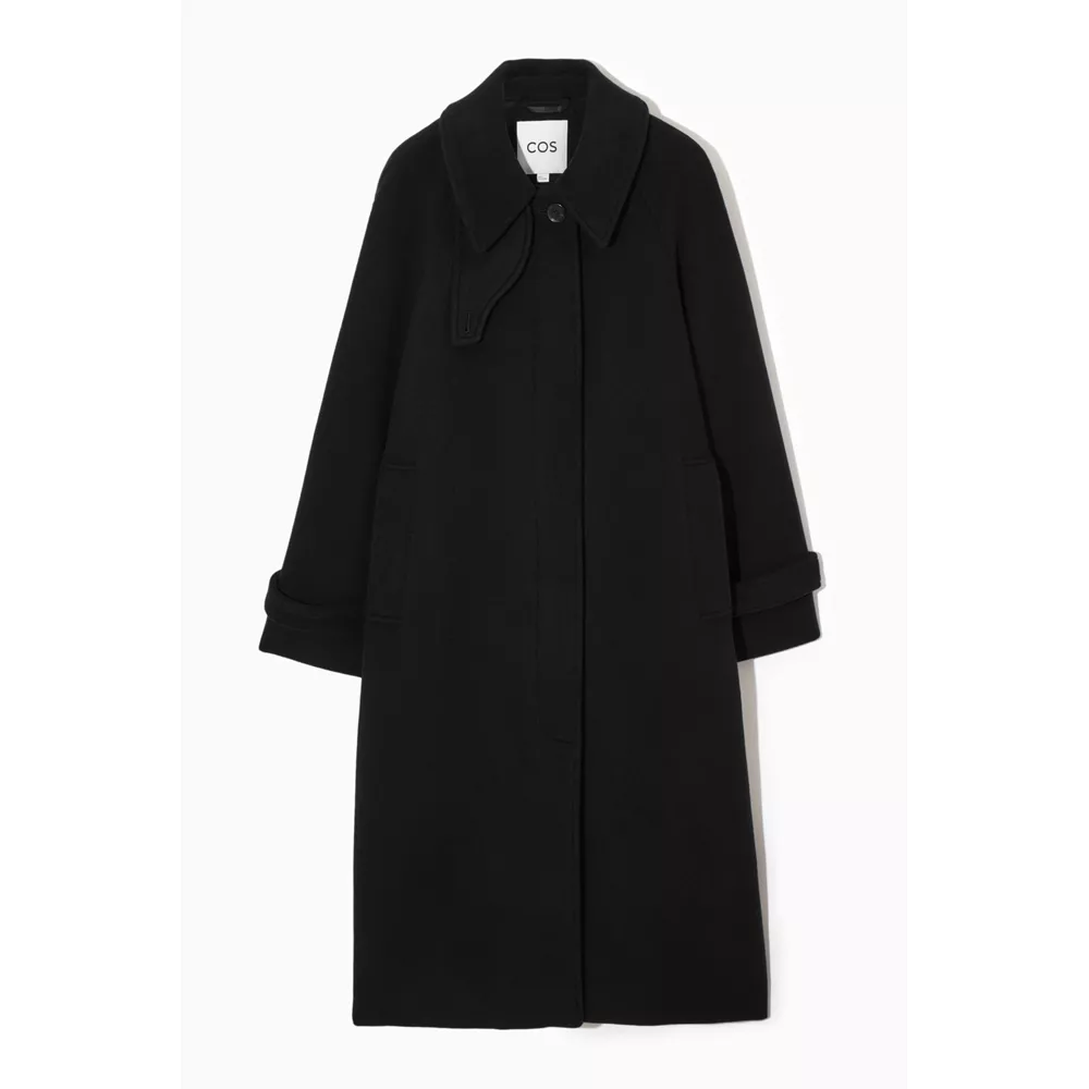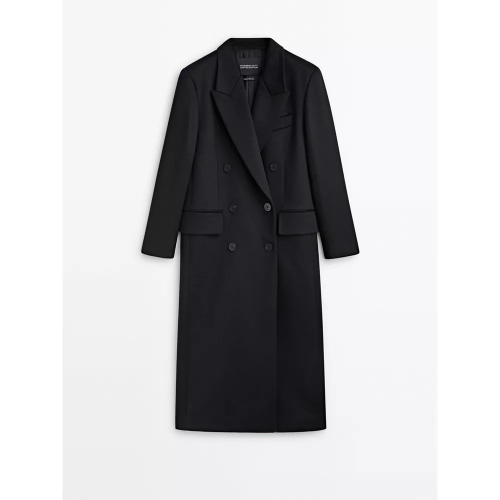 Μαύρο μακρύ σταυρωτό παλτό, Massimo Dutti.