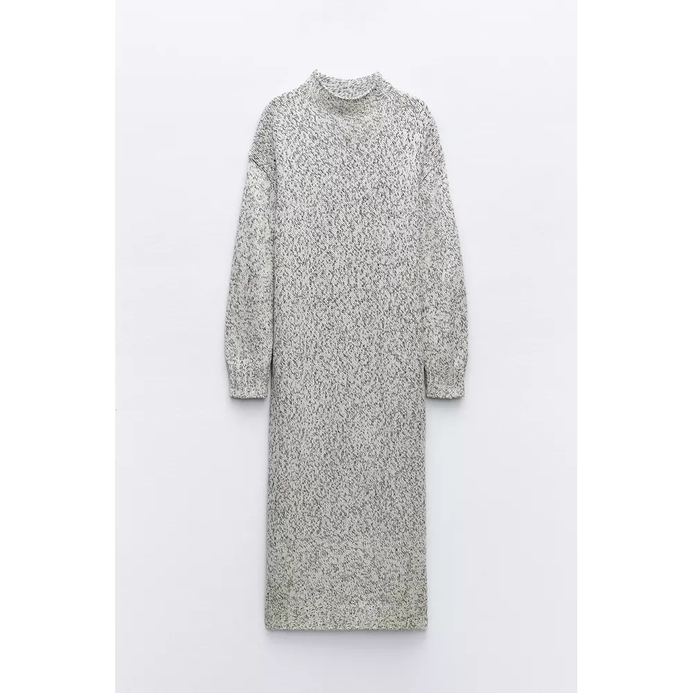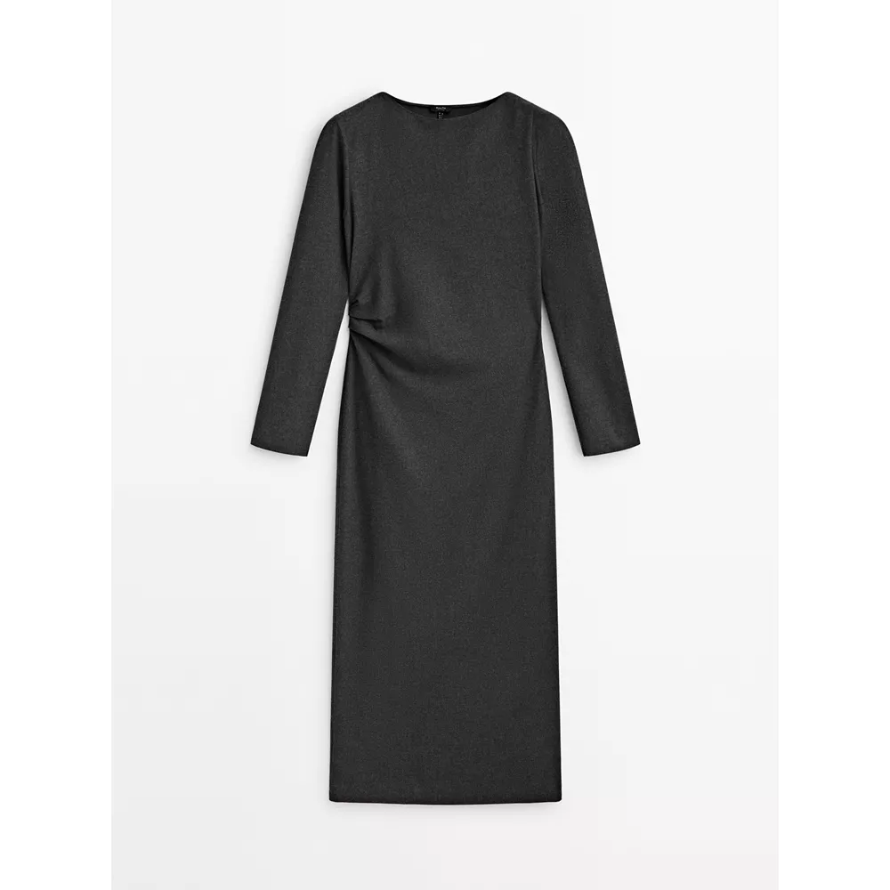 Μακρυμάνικο μίντι φόρεμα με ντραπέ λεπτομέρεια, Massimo Dutti.