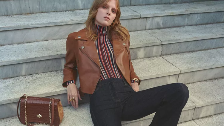 Δερμάτινο τζάκετ και τζιν παντελόνι TWINSET, μπλούζα LA FÉE MARABOUTÉE, όλα Notos Αθήνας, Θεσσαλονίκης, notos.gr. Σκουλαρίκια, δαχτυλίδια και βραχιόλι "Terra", Li-LA-LO. Τσάντα, ALVIERO MARTINI 1A CLASSE. Μπαλαρίνες ENVIE, envieshoes.gr.