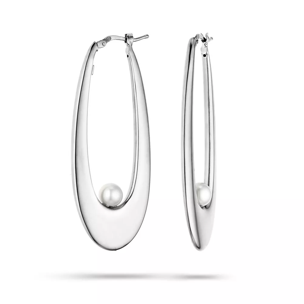 Σκουλαρίκια κρίκοι Pearls από επιροδιωμένο ασήμι 925° με freshwater pearl, Li-LA-LO.