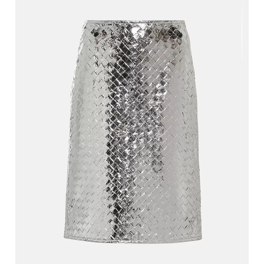 Intrecciato μίντι δερμάτινη φούστα metallic, Bottega Veneta.
