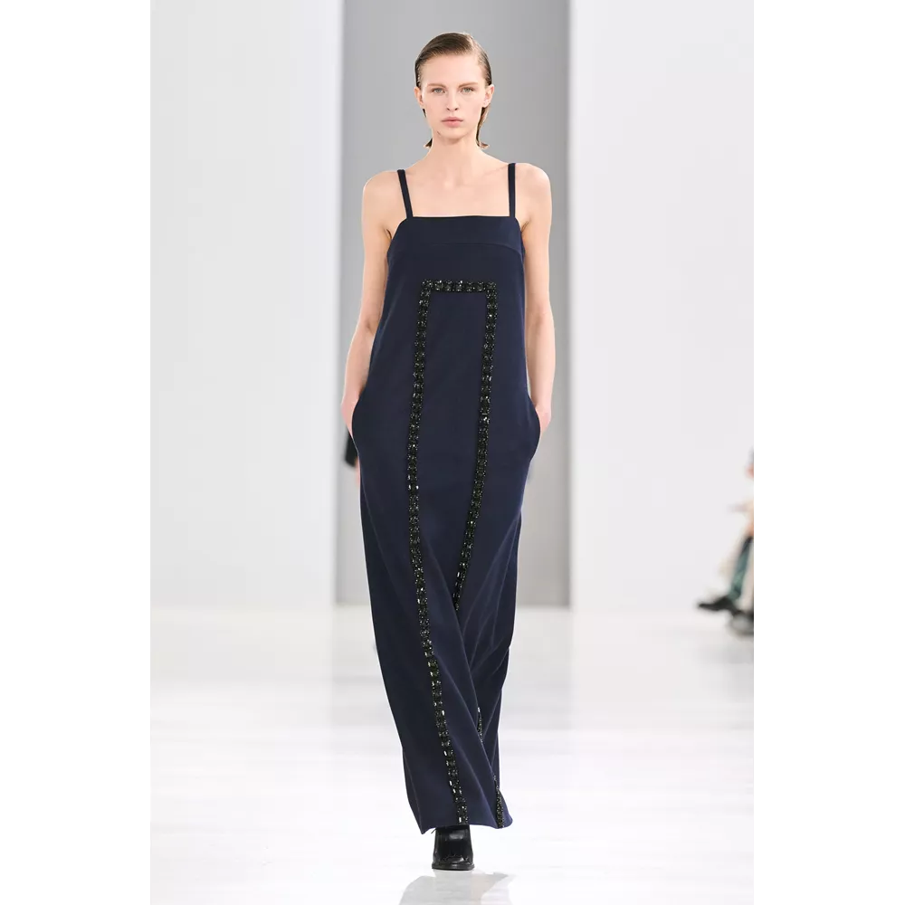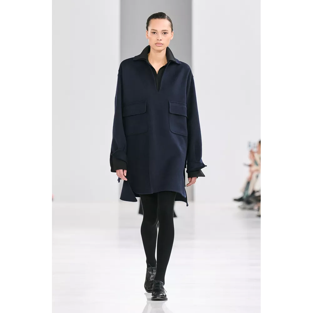 Η παλέτα της Max Mara AW'24 επιμένει σε ουδέτερες αποχρώσεις (μαύρο, γκρι) και το signature καμηλό, ωστόσο μας συστήνει και την "deep inky navy" απόχρωση του μπλε που εμπνέεται από τη φράση της Colette "υπάρχουν γνώστες του μπλε, όπως υπάρχουν γνώστες του κρασιού".
