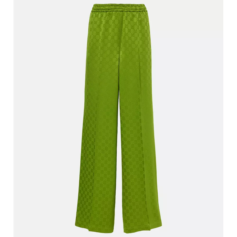 GG σατέν ζακάρ φαρδύ παντελόνι, Gucci.
