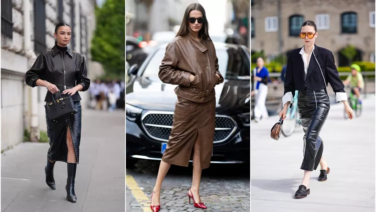 Το μήκος που είναι κυρίαρχο στις δερμάτινες φούστες αυτή τη σεζόν είναι το μίντι και μάξι. Ένας συνδυασμός που είναι πολύ δημοφιλείς και θα συναντήσετε σε πολλές street style ιδέες είναι αυτός με leather τζάκετ. Το leather on leather, λοιπόν, είναι ένας από τους πιο επίκαιρους τρόπους για να δημιουργήσετε σύνολα με δερμάτινες φούστες. Φορέστε δερμάτινα σακάκια ή δερμάτινα bomber με δερμάτινες φούστες σε ίσια γραμμή, προσθέστε δερμάτινες μπότες ή δερμάτινες γόβες και θα είστε τέλεια συντονισμένες με το στιλ της εποχής. Καθώς πλησιάζουμε στον χειμώνα, και οι θερμοκρασίες θα πέφτουν, δεν χρειάζεται να εγκαταλείψετε τον συγκεκριμένο συνδυασμό. Μπορείτε απλά να κάνετε layering προσθέτοντας ένα μάλλινο παλτό πάνω από το σύνολο.