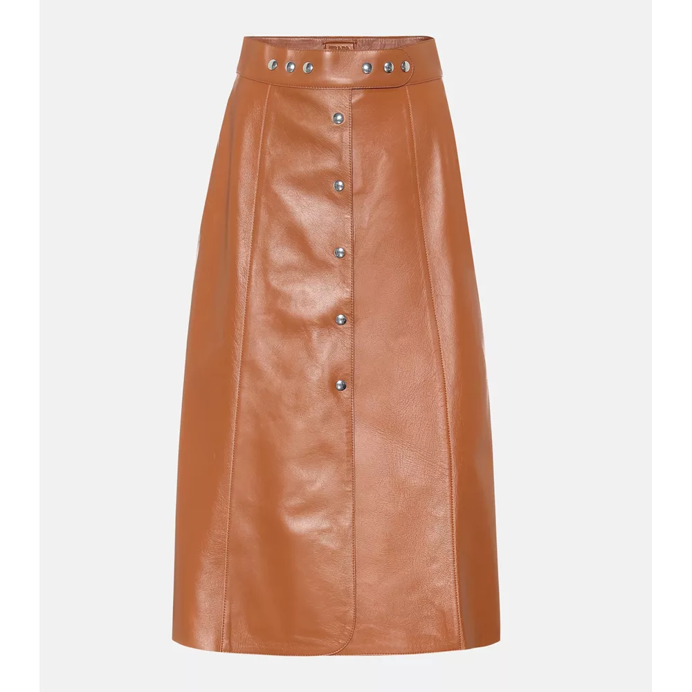 Φροντίστε, επίσης, να επενδύσετε σε δερμάτινες φούστες σε Α-γραμμή όπως αυτή η μίντι σε ταμπά απόχρωση από τη συλλογή Prada ή η καφέ μίντι από τη συλλογή Cos, που προσφέρονται για πολλούς συνδυασμούς όπως με πουλόβερ ή με scarf tops.
