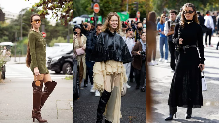 Οι μπότες μέχρι το γόνατο ή και πάνω απ' αυτό, ωστόσο, διαχρονικά είχαν ένα συνδυασμό που λειτουργούσε άψογα και οι fashionistas τον υιοθετούν και φέτος. Μίνι φορέματα φοριούνται με ψηλές μπότες και δημιουργούν looks με άπλετη διάθεση sexiness. Άλλοι συνδυασμοί που περιλαμβάνουν φορέματα και μπότες είναι το κλασικό combo του μαύρου φορέματος με μαύρη μπότα με τακούνι που προσφέρεται και για night out looks, ενώ φέτος είναι η χρονιά της suede μπότας που τη βλέπουμε να φοριέται με μάξι φορέματα σε μια σύγχρονη παραλλαγή του bohemian look.
