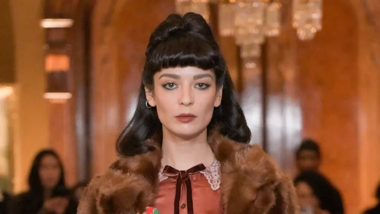 Παστέλ θαλασσί σκιές παρουσιάστηκαν και στο show του οίκου Christian Cowan, με το beauty look των μοντέλων να ολοκληρώνεται με εντυπωσιακά, retro-looking hair looks γεμάτα όγκο.