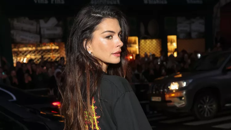 Πιο αναλυτικά, η ηθοποιός βρέθηκε στις 4 Οκτωβρίου στο show του Balenciaga για τη σεζόν Άνοιξη/Καλοκαίρι 2026, δίπλα σε προσωπικότητες όπως οι Simone Ashley και Ariana Greenblatt. Καθισμένη στην πρώτη σειρά, η Hathaway, εμφανίστηκε με ένα graphic T-shirt Balenciaga, δερμάτινα opera gloves και oversized μαύρα γυαλιά ηλίου, με το σύνολο της ίδιας να συνεχίζει ωστόσο ανατρεπτικά, με μια μακριά ουρά που άγγιζε το πάτωμα και διέθετε statement διάθεση. Για να απογειωθεί αυτή, τα rock στοιχεία του μακιγιάζ και των μαλλιών ήταν αυτά που τόνιζαν τον χαρακτήρα του συνόλου.
