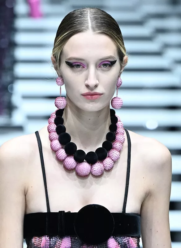 Ο Pierpaolo Piccioli του οίκου Valentino απότιμησε φόρο τιμής στο εμβληματικό look της πιο διάσημης κούκλας όλων των εποχών, της Barbie, παρουσιάζοντας δημιουργίες "βουτηγμένες" στο αγαπημένο της φούξια χρώμα. Στο μακιγιάζ η τάση του λεγόμενου Barbiecore μεταφράστηκε σε έντονα graphic wings σε φούξια χρώμα, τα οποία συνδυάστηκαν με γυμνή επιδερμίδα και χείλη.