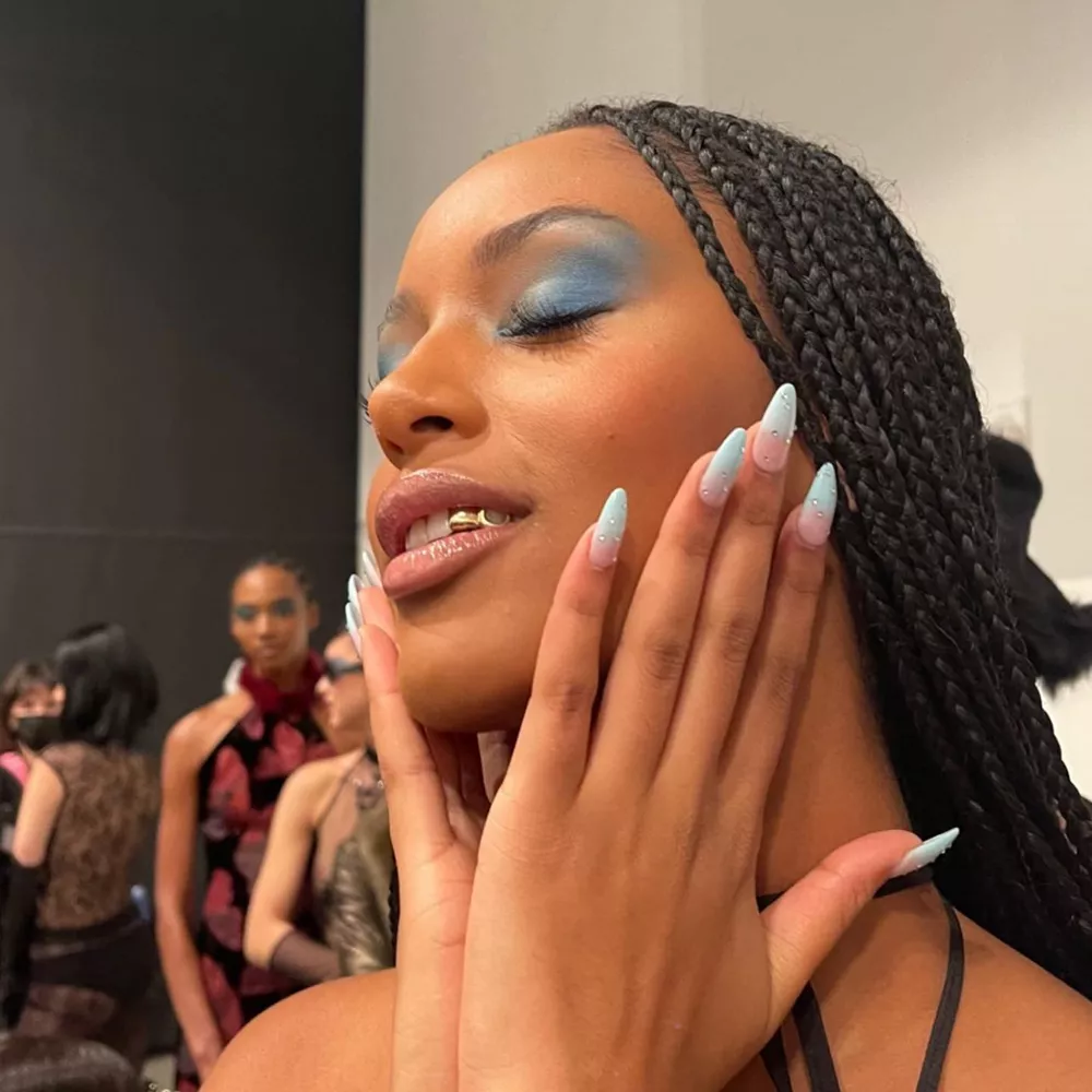 Ανάμεσα στην πληθώρα μανικιούρ στο show του οίκου Off-White ήταν κι ένα σε πολύ κλασική μπλε απόχρωση και coffin σχήμα.