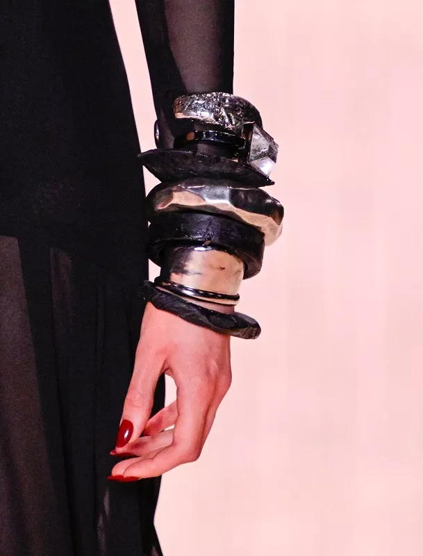 Η πιο μαξιμαλιστική τάση της σεζόν είναι τα έντονα διακοσμημένα μανικιούρ. Για το show του οίκου Markarian, η nail artist Gina Edwards άντλησε έμπνευση από τη δεκαετία του 1930, δημιουργώντας Hollywood glam μανικιούρ σε ποικίλες αποχρώσεις διακοσμημένα με πέρλες, στρας και λαμπερά embellishments.