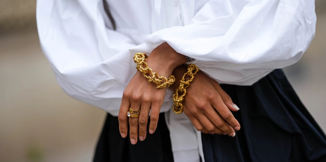 Η τάση των metallics της σεζόν, που διανύουμε τώρα, φαίνεται πως θα συνεχίσει και την επόμενη, με τον οίκο Bronx & Banco να προτείνει λευκά μανικιούρ με χρυσές αφαιρετικές λεπτομέρειες.