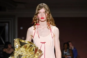 Για το show του οίκου Prada, η makeup artist Pat McGrath παρουσίασε λαμπερή επιδερμίδα και παστέλ βλεφαρίδες. Αντί για κλασικές falsies, η McGrath "επιστράτευσε" fluffy βλεφαρίδες σε μια μεγάλη ποικιλία χρωμάτων, από απαλό ροζ και λιλά, μέχρι εκρού και ροδακινί.