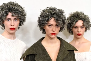 Τα φρύδια των μοντέλων στο show του οίκου Del Core βάφτηκαν σε γκρι και παστέλ ροζ χρώμα, αποτελώντας το focal point του beauty look τους και ίσως και ένα σχόλιο περί ageism (;).