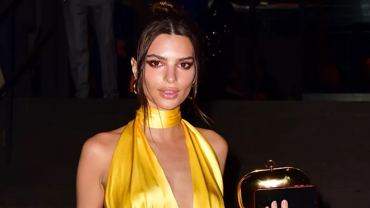 Η Emrata εμφανίστηκε στο γάμο του Marc Jacobs φορώντας ένα υπέροχο σατέν κίτρινο φόρεμα, το οποίο συνδύασε με bronzed σκιές στα μάτια και ένα top knot με χωρίστρα στη μέση, που επέτρεπε να αναδειχθούν οι λεπτομέρειες του outfit.