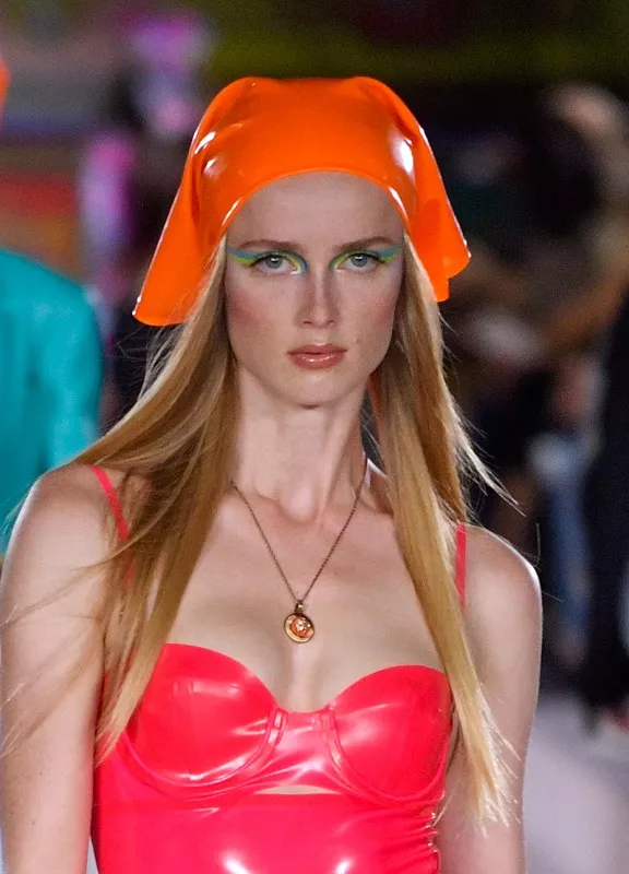 Από το catwalk του δεν έλειπαν και οι πιο edgy bandanas από latex ύφασμα σε έντονα neon χρώματα.