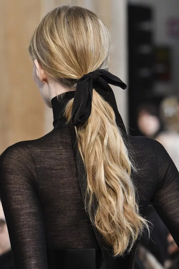 Η τάση είχε προκαλέσει αίσθηση ήδη από τον προηγούμενο fashion month με τον οίκο Max Mara να στολίζει τις χαμηλές αλογοουρές των μοντέλων του με μαύρη κορδέλα δεμένη σε φιόγκο. Hair bows είδαμε επίσης στα FW23-24 shows των οίκων Dior και Zimmerman.