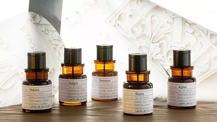 Ισάριθμα χωριά της Νάξου γίνονται το σημείο αναφοράς για αυτές τις αρωματικές συνθέσεις, που μοιράζουν απλόχερα τις εικόνες, μνήμες και ευωδιές τους μέσα από minimal καφέ μπουκάλια σε λευκές συσκευασίες, που θυμίζουν old-school φαρμακείο.