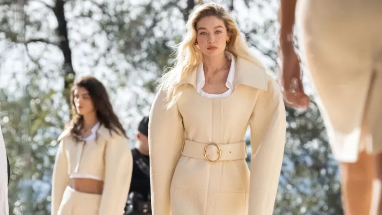 Το catwalk, με φόντο το έργο Les Femmes de Venise του Alberto Giacometti, άνοιξε το supermodel, Gigi Hadid, ενώ στην πασαρέλα περπάτησαν η Emily Ratajkowski και η Vittoria Ceretti.