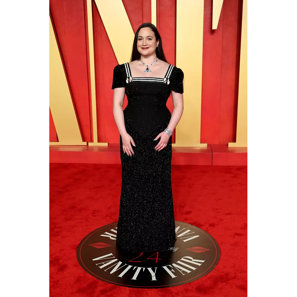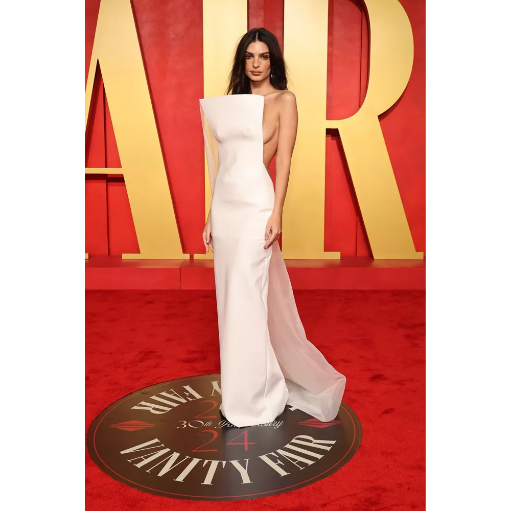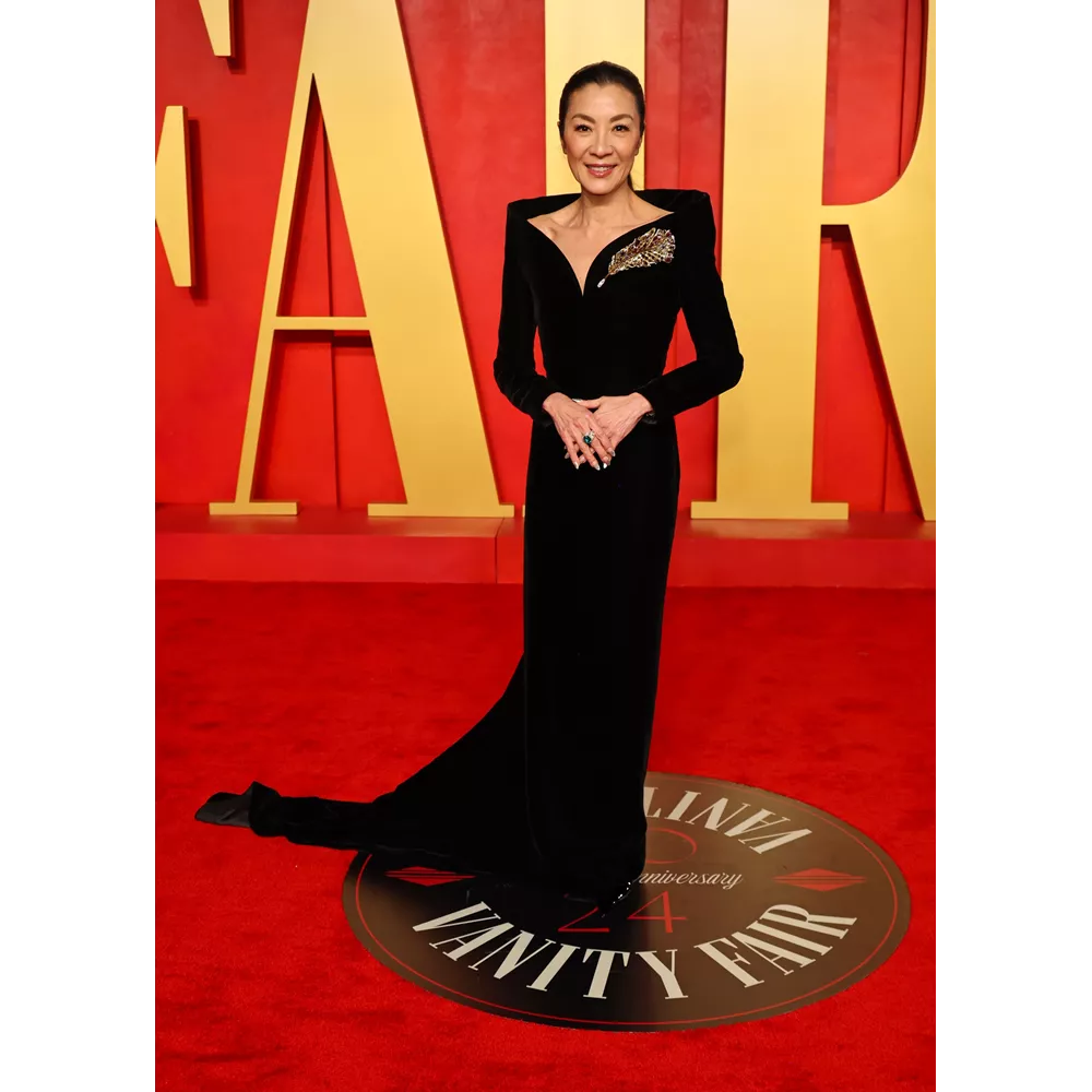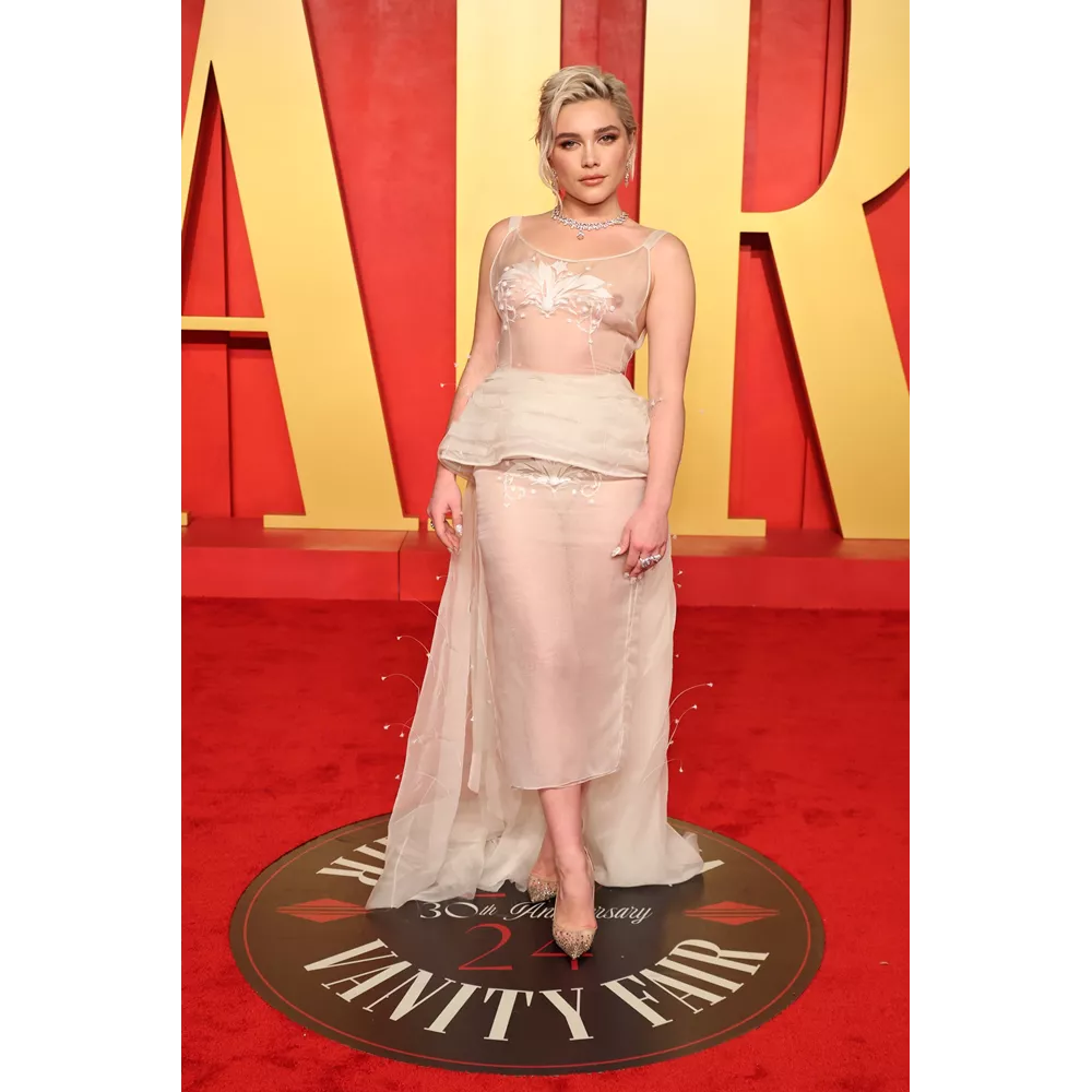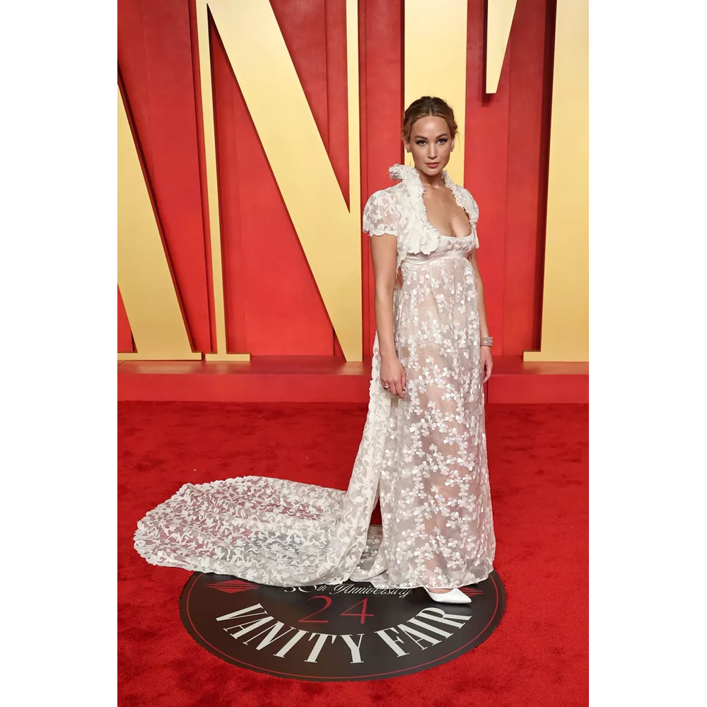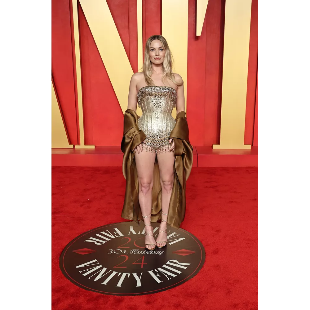 Στις δυνατές στιγμές του κόκκινου χαλιού στο πάρτι του Vanity Fair ανήκουν η εμφάνιση της Margot Robbie με ένα χρυσό κορσέ κορμάκι από τη συλλογή Άνοιξη/Καλοκαίρι 1996 του οίκου Mugler, το look της Sydney Sweeney με vintage φόρεμα του σχεδιαστή Marc Bouwer που είχε φορέσει η Angelina Jolie στα Oscars του 2004, το vintage Givenchy φόρεμα της Jennifer Lawrence, αλλά και η εμφάνιση της Kylie Jenner με μια δημιουργία από τη συλλογή Maison Margiela SS24 Couture, η οποία ενθουσίασε στην πιο πρόσφατη εβδομάδα μόδας Υψηλής Ραπτικής στο Παρίσι.